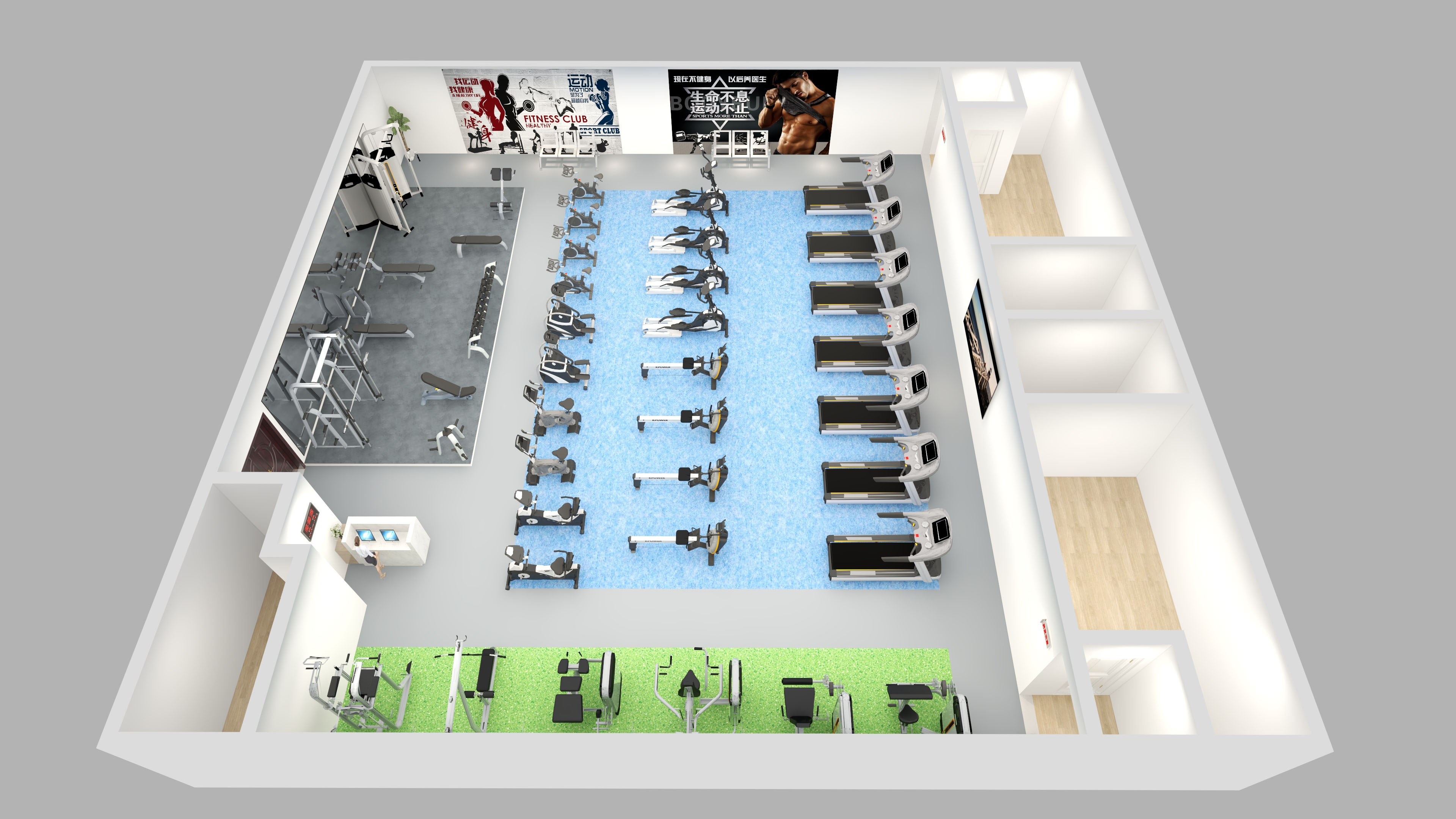 可根據(jù)健身房面積,人群定位,項目預算進行規(guī)劃設計