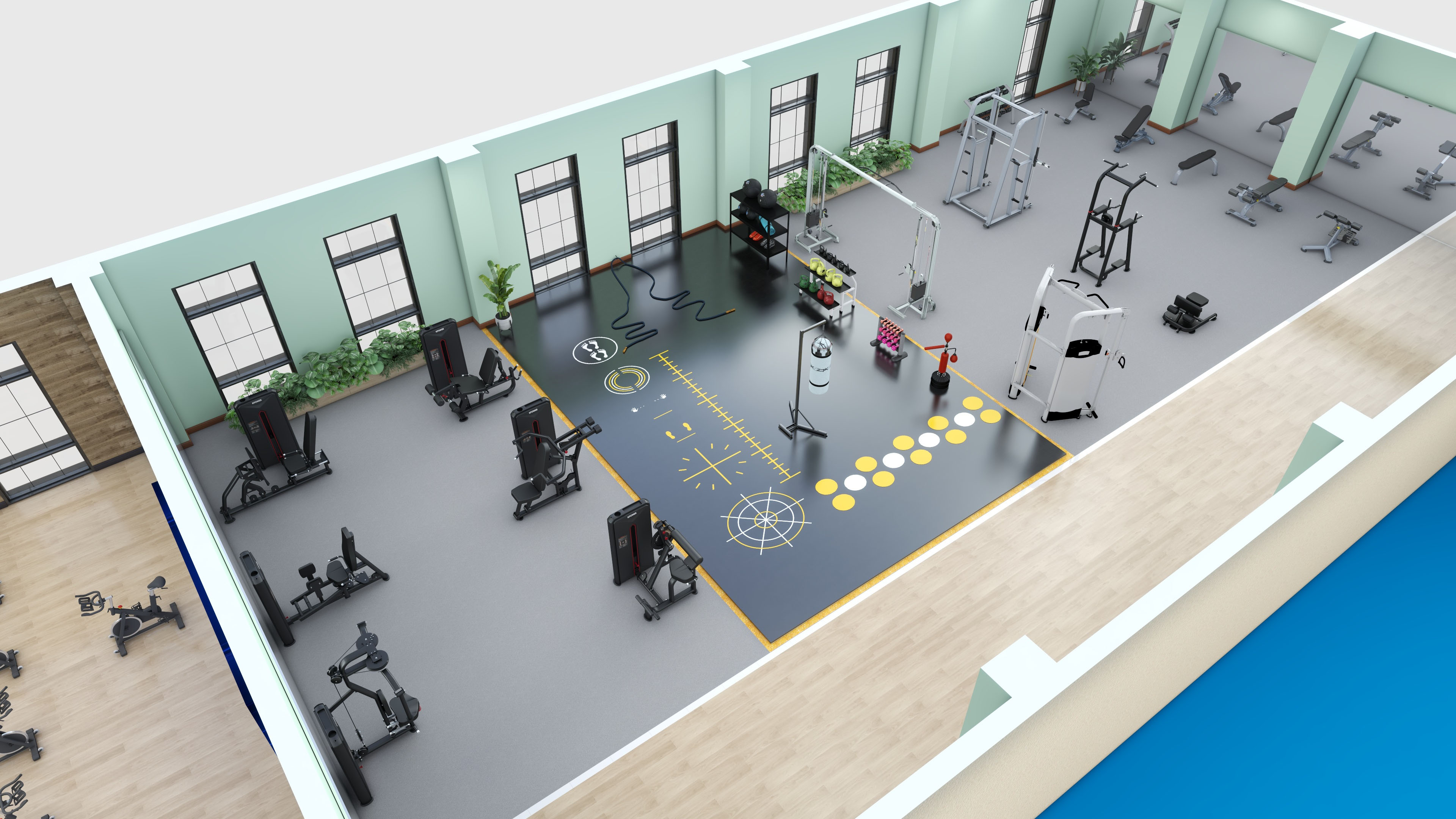 可根據(jù)健身房面積,人群定位,項目預(yù)算進(jìn)行規(guī)劃設(shè)計