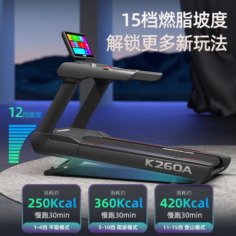 康樂佳K260A電動(dòng)跑步機(jī)智能健身房專用加寬大跑臺(tái)大型彩屏