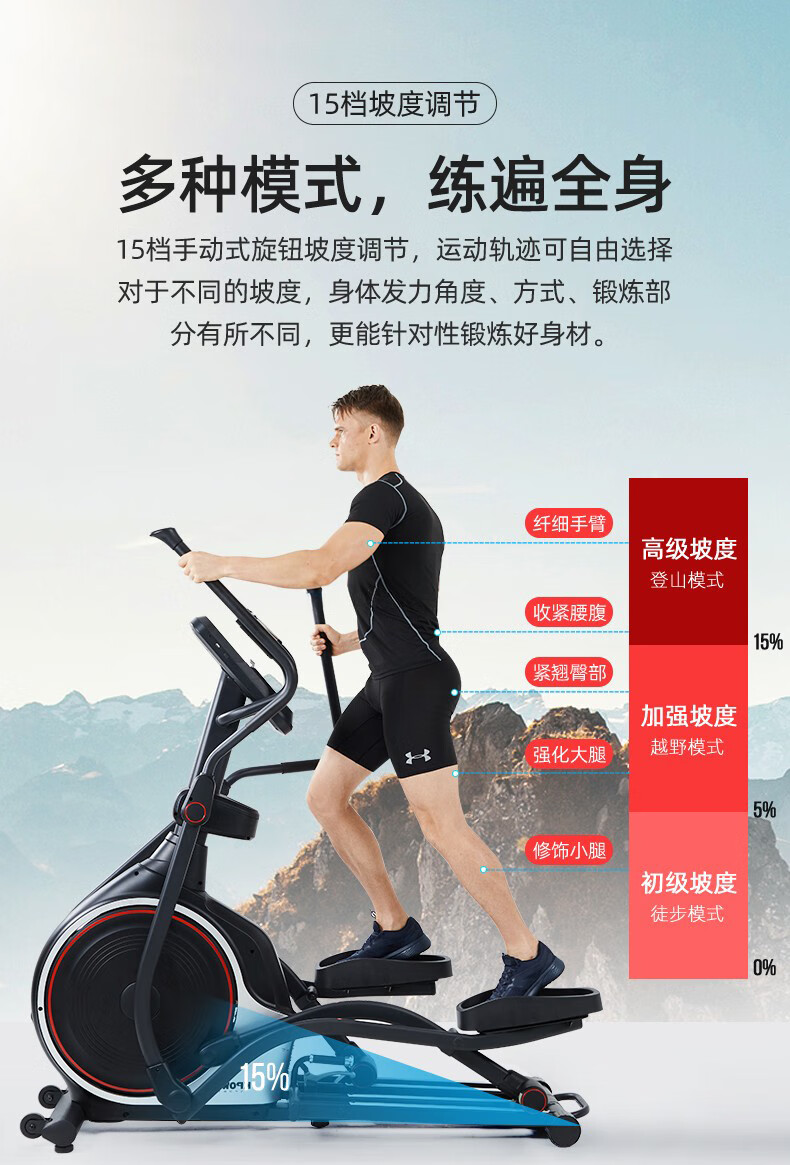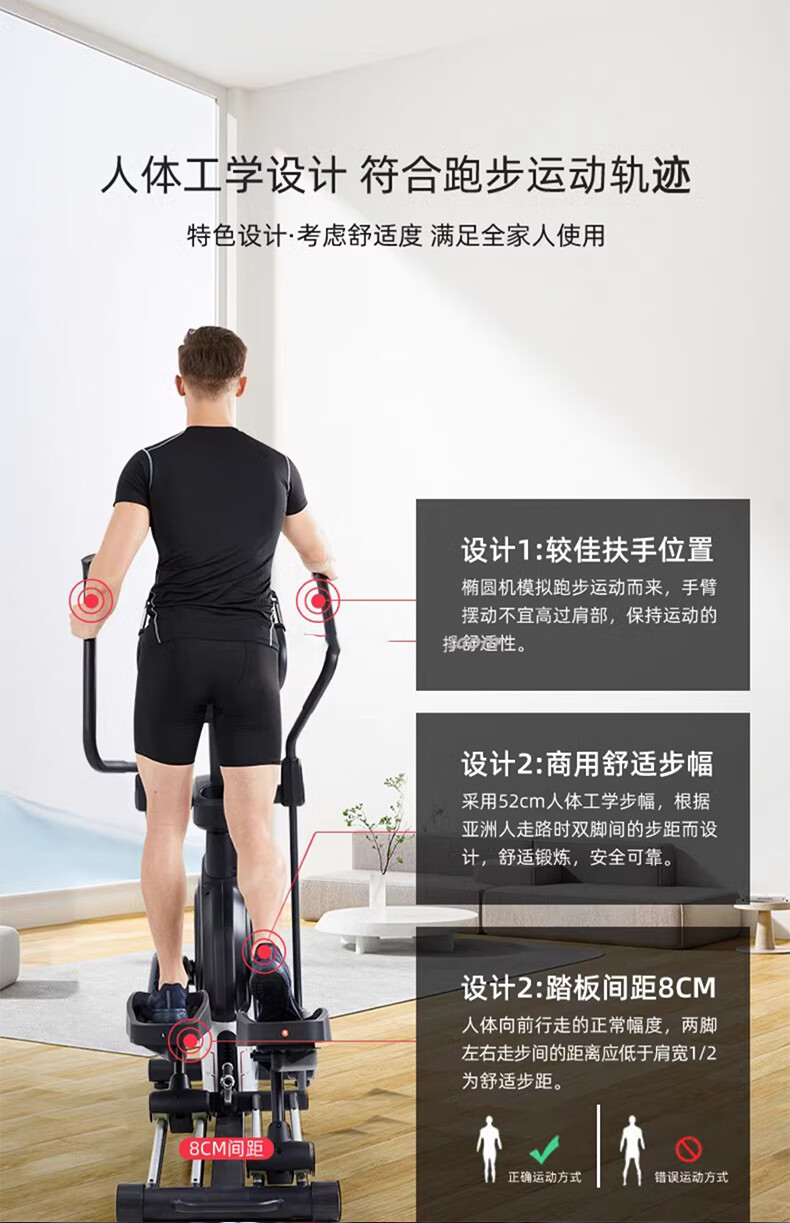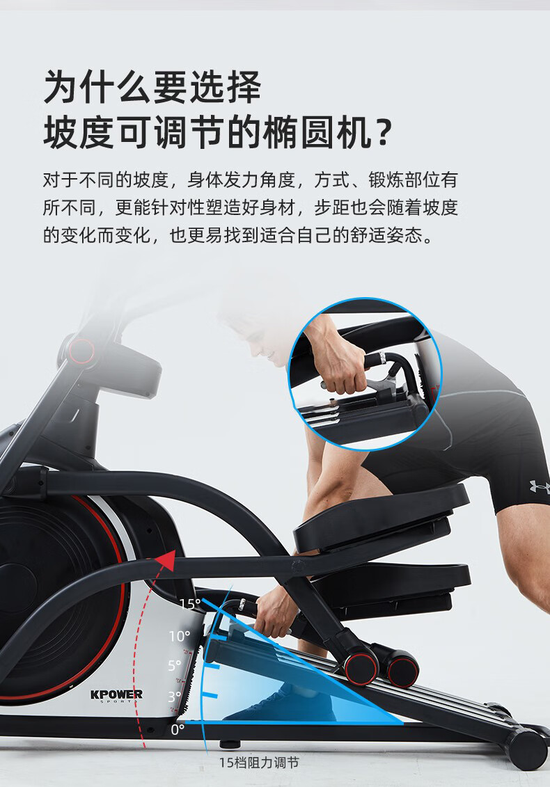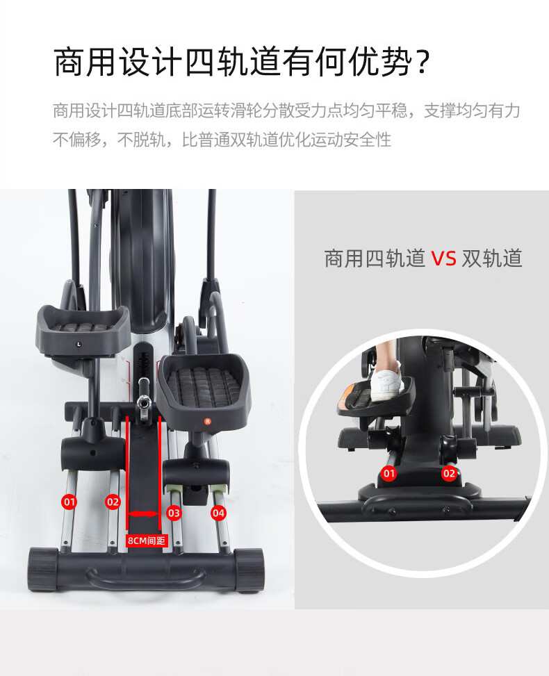 康樂(lè)佳橢圓機(jī)家用橢圓儀太空漫步機(jī)健身房專用商用健身器材K8745T/TP 商用四軌道【磁控15檔】K8745T