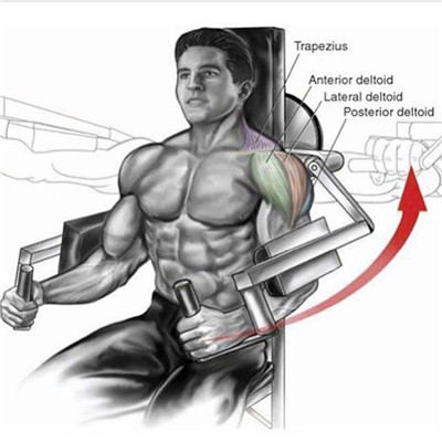 動(dòng)作2:器械坐姿側(cè)平舉,鍛煉三角肌中束。