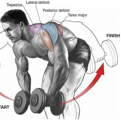 動(dòng)作3:俯身啞鈴側(cè)平舉,鍛煉三角肌后束。