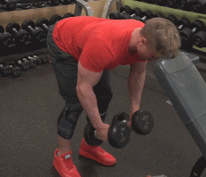鍛煉方法:起始姿勢(shì):兩腳分開站立同肩寬,兩手掌心相對(duì),手持啞鈴,屈髖,使上體向前屈體至與地面平行,兩腿稍屈,下背部沒有拉緊感。兩手持鈴向兩側(cè)舉起,直至上臂與背部平行(或略為超過),稍停,然后放下啞鈴還原。重復(fù)做。