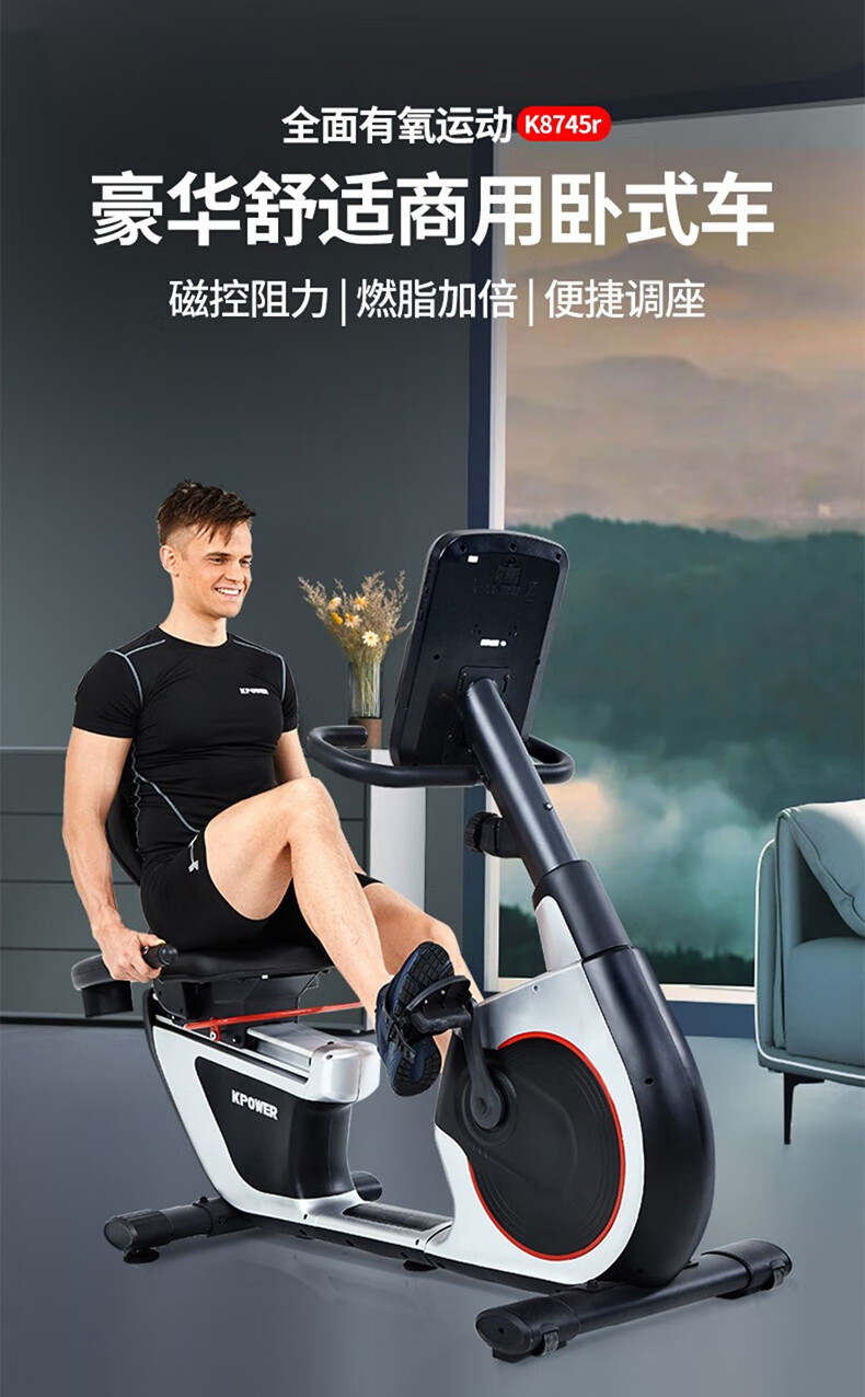 康樂(lè)佳K8745R動(dòng)感單車健身房專用室內(nèi)自行車健身器健身單車家用 磁控臥式車K8745R
