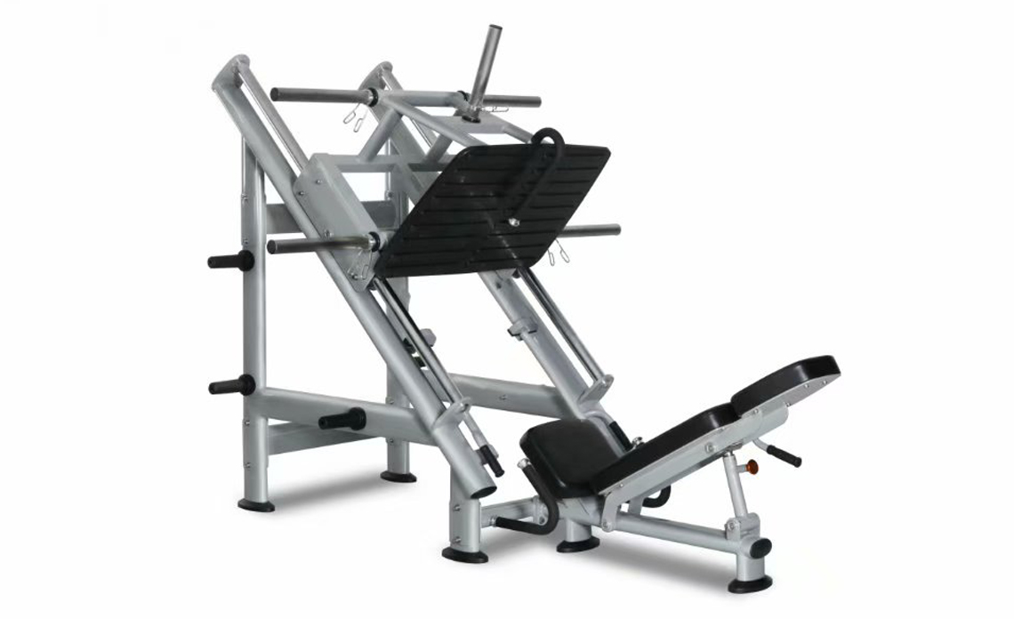 在倒蹬的整個動作中,髖關(guān)節(jié)的運動范圍受到限制減少,大腿和軀干在訓(xùn)練過程中近乎呈直角,所以原本施加在腘繩肌和臀大肌的負(fù)重,會相應(yīng)地轉(zhuǎn)移到股四頭肌上。